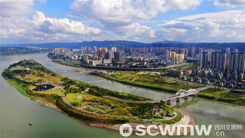 长江竹岛(近)与江安县城(远)。江安县文明办供图