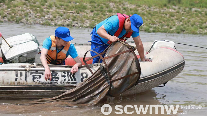 江安长江协助巡护队在拆除非法捕捞工具。江安县文明办供图