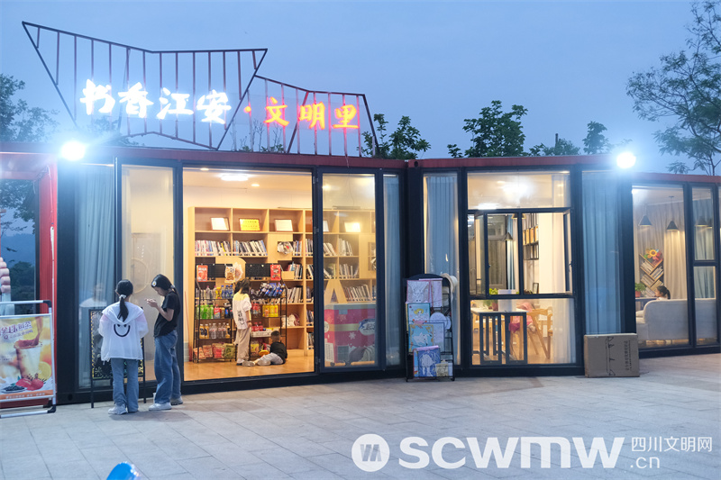 市民在两江公园“文明花园”内的书香江安·文明里书吧感受文明氛围。漆世平 摄