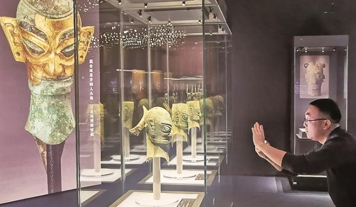 正在国家博物馆南8、9展厅举办的“双星耀世——三星堆—金沙遗址古蜀文明展”荟萃三星堆—金沙遗址出土的200余件(套)精美文物,让观众“一展看懂”三星堆—金沙的故事。