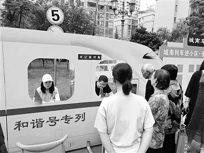 “‘城南列车’运行以来,已经接受群众各类咨询1000余人次,收集问题300余个,解决问题257件,受到了群众的一致好评。”城南社区副主任王雪表示,“城南列车”进小区系列便民服务营造了和谐号高铁服务场景,集合“党务+政务+服务”三务于一体,一站融合,一车直达,实现服务的“零”距离,加强了党群干群联系。与此同时,形式丰富的新时代文明实践活动也有效整合了各项服务资源,成为助力基层治理的有效途径和收集群众意见的绿色通道。