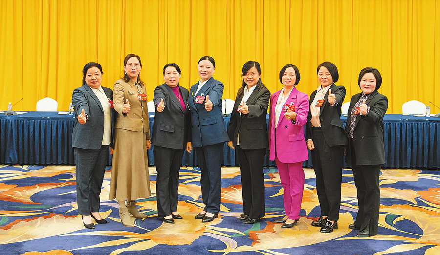 3月7日,小组会后,8位女代表合影。川报集团特派记者 李强 摄