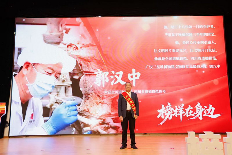 三星堆博物馆文物修复师郭汉中,40年与文物为伴,从文物修复“门外汉”成长为国之重器“唤醒者”;八旬骨科医生陈怀炯,66年坚持清晨五点半开诊,接诊百万患者,20余年“一元挂号费”从未涨价;腾讯未成年人保护营地教育负责人马滢,因儿子的一次意外举动顿悟亲子沟通之道,7年间服务超3600万个家庭,用“四步教育辅导模型”和有温度的AI大模型,让网络从“洪水猛兽”变成孩子成长的“光明桥”;四川省港投集团货车驾驶员杨光银,泸定地震中放弃避险机会,用50吨重的罐车为7名工人筑起“生命屏障”……活动现场,榜样们现场“开讲”,虽然他们岗位不一样,但说的每句话、做的每件事,都透着一股子奉献和担当。