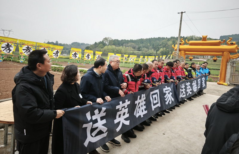 绵阳干部群众自发送英雄刘应强回家。