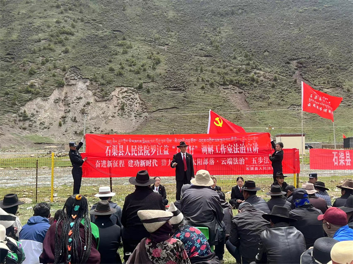 在群众需要的每一个角落,都有罗江益坚定的身影。他坚持践行“依靠群众、调查研究、着重调解、就地办案”的“十六字工作方针”,将法庭搬到牧场的帐篷里、百姓的火塘边、争议的虫草山上,在离群众最近的地方开庭问案。尤其到了每年矛盾高发期的虫草采挖季,他都会驻守在真达乡的雪山帐篷法庭一个多月,悬挂国徽、扛起党旗巡山调解。