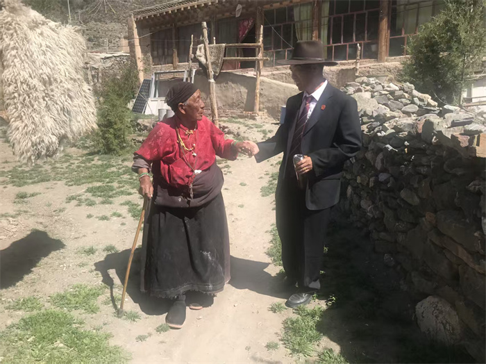 罗江益(右)入户走访关心群众。甘孜州文明办供图