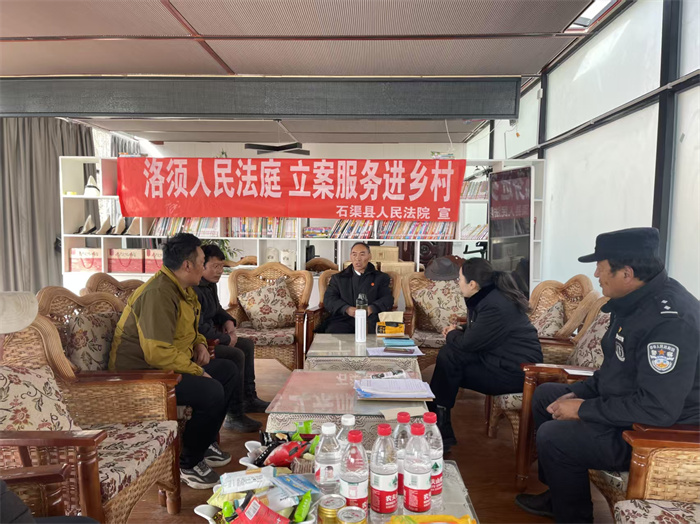 罗江益(中)带队进村开展立案服务。甘孜州文明办供图
