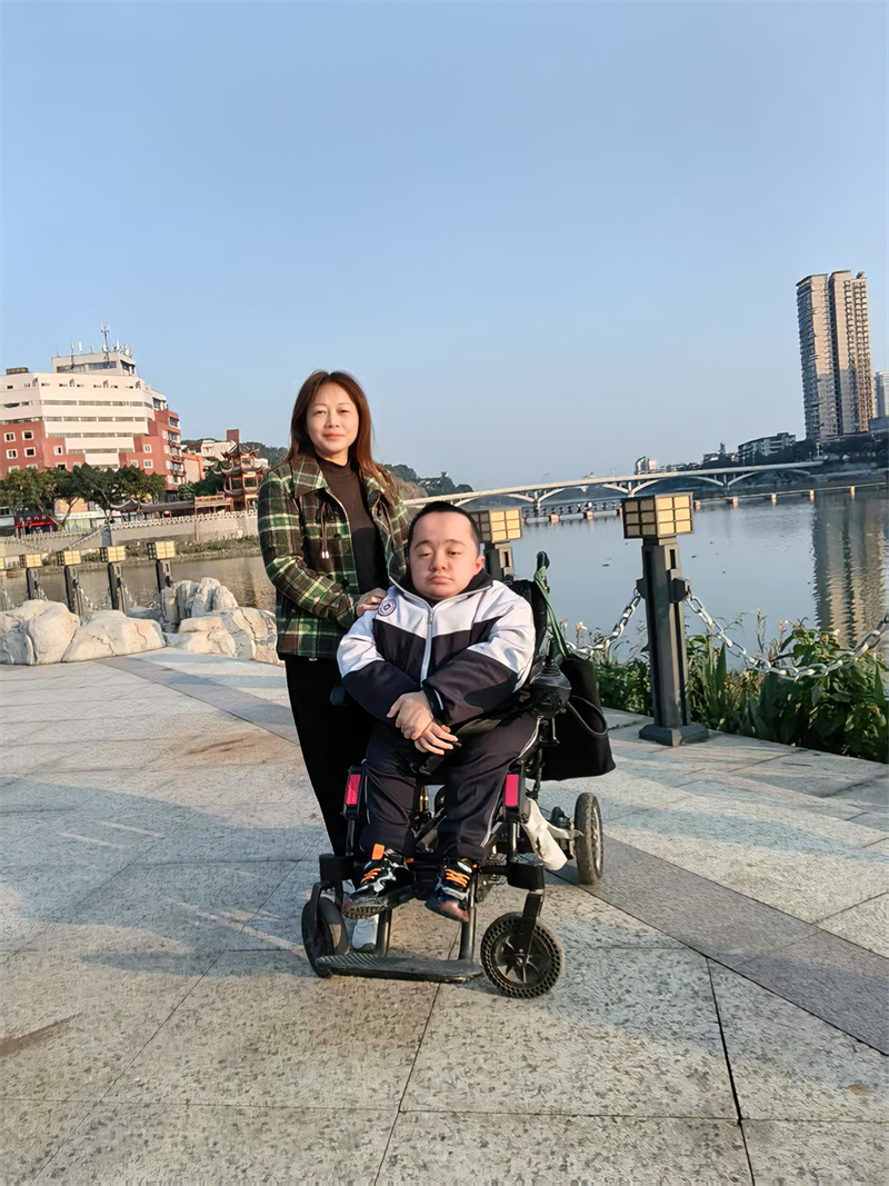 李晓容是乐山市五通桥区冠英镇玉津街社区居民。19年前,初为人母的她接到了一个沉重的诊断结果——儿子罗烨祥患有成骨不全症,也就是俗称的“瓷娃娃”。这种疾病发病率仅十万分之三,意味着孩子终生要承受轻微磕碰就可能骨折的风险,甚至大概率无法站立行走。