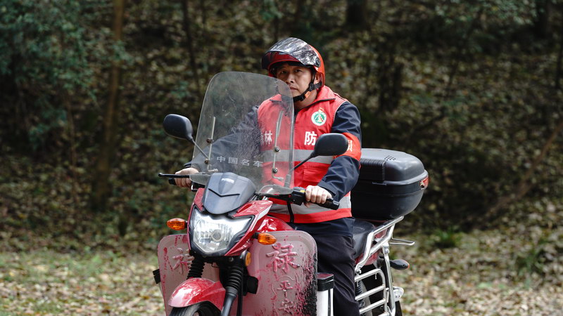 四川文明网内江讯(罗尹)春风拂过川东丘陵,植树节将至,内江隆昌市石燕桥镇尖山子森林公园绿意翻涌。林区小道上,一道熟悉的红色身影准时穿梭其间——摩托车轰鸣,后座载着水杯与干粮,车载喇叭循环播放的防火宣传声,成为这片山林最安心的回响。