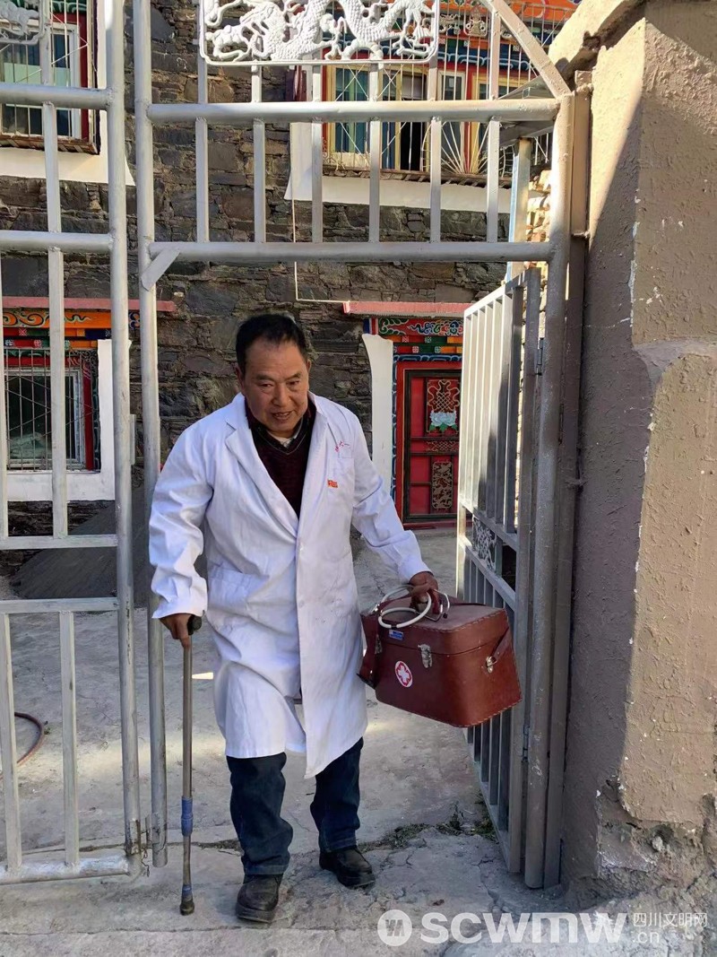 索木滚,男,藏族,77岁,中共党员,阿坝州壤塘县蒲西乡斯跃武村乡村医生。看着索木滚走村入户年老的背影,许多人都为之感叹,与之交谈中索木滚乐呵呵的说道,“只要村民有需要,我就一直干下去!”今年77岁的乡村医生索木滚在这里一待就是一辈子;19岁走村入寨为村民看病,这一行一干就是58年。从少年到白头,从风华正茂到风烛残年,索木滚因行走高原翻山越岭为牧民问诊,膝盖早已落下严重病根,可他拄着拐杖依然坚守在乡村从医路上。