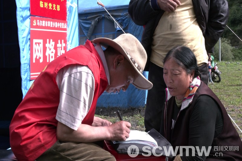 就这样,然拉木滚附近的两户人在然拉木滚的提醒帮助下,共同跑向空旷的坝子上。这时村支部书记恩波斯足赶到,问了情况之后,让然拉木滚安顿好其他人,就马不停蹄赶去其他组了,然拉木滚和妻子俄玛来两人分头去拿了被子和塑料布在空旷的地方和邻居搭起了临时帐篷,安置期间,还有村民表示:“不得再震了。”想回家继续睡觉,然拉木滚斩钉截铁地说:“不能回去睡,我刚刚看了一下,我们几家的房子都冰了(开裂了),住不得了,还有我以前当地灾监测员时培训过,地震之后,水断了,说明上头有可能垮了堵起了,我们这里又是地灾点,一会洪水、泥石流下来了,我们跑都跑不脱。”经过不停劝说,准备回家睡觉的邻居放弃了回家睡的想法。然而,过了不多久,无尽的黑暗、潮湿的环境再次动摇了几位村民回家的心,为平复村民回家情绪,然拉木滚向村民讲起自己学来的地震知识,并想着明天一早一定要到上面去看一下是不是有堰塞湖。