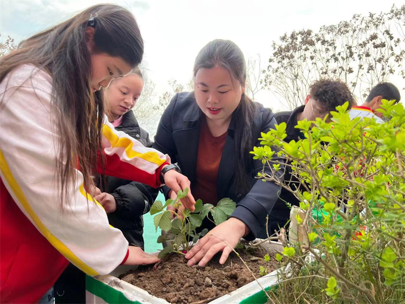 “教学要化抽象为具象,化枯燥为有趣,听障生教学尤其如此。”摆在沈泽花眼前的难题是,除了一本教材,没有别的可用作辅助的教具。老师费了半天劲调动氛围,学生却一脸茫然,沈泽花就自己动手制作教具。废弃鞋盒、林间青竹……生活中随处可见的物件在他们手中摇身一变,成为课堂上的好帮手。