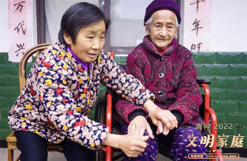 102岁高龄的杨秀英,最喜欢茶余饭后到处走走,罗学英担心老人的安全,经常陪着婆婆在附近散步、聊天解闷。有一段时间,老人犯头晕,罗学英担心老人身体,便也每晚定时起身查看老人身体情况,几乎没合过眼。虽然老人年事已高,但在儿媳的细心照顾下身体依然硬朗。如今,婆婆耳朵不好,可由于多年陪伴的默契,罗学英在老人耳边讲什么、想表达什么意思,婆婆一定能明白。罗学英说:“老人嘛,就是顺到她,我都不跟她争论,耐心一点就是了。”正是这样的耐心与开朗,让婆媳关系变得和谐融洽。