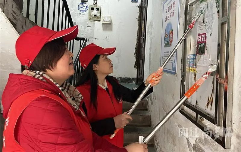 发放完宣传手册后,文明实践志愿者又与大洲社区工作人员一道,前往社区街道和辖区小区开展后续志愿服务。大家分工协作,有的整理乱停乱放的共享单车,让街道秩序更井然;有的拿着除胶剂、小铲子清理墙面的“牛皮癣”小广告,还原整洁墙面;有的清扫路面垃圾、清理卫生死角,让社区环境焕然一新,用实干为居民营造整洁有序的居住环境。