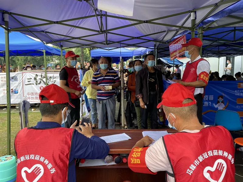 为积极响应国家关于新冠疫苗应种尽种的号召,建立新冠肺炎免疫屏障,近日,邛崃市新时代文明实践中心联合医疗党员志愿服务队、社会组织党员志愿服务队、应急党员志愿服务队、社区党员志愿服务队等多支党员志愿服务队伍,以党史学习教育为契机,将“我为群众办实事”与新冠疫苗接种服务相结合,在邛崃市多个疫苗接种点开展“暖心志愿行,助力疫苗接种”志愿服务活动,营造有序、文明的接种环境。