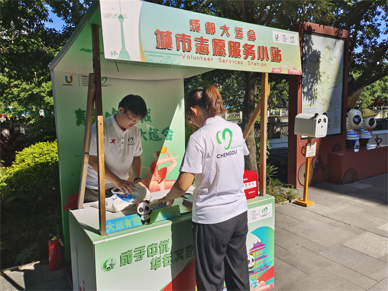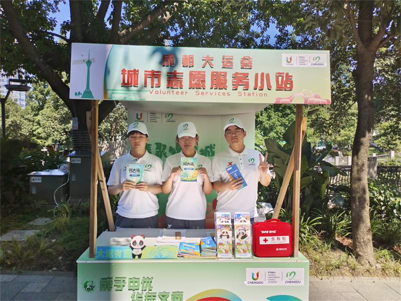 “作为当代中国青年,我们生逢其时,施展才干的舞台无比广大,能够成为成都大运会的志愿者感到十分荣幸,自己将以‘专业、主动、热情、大方’的标准要求自己,在工作中做到‘细致、精致、极致’,为成都贡献自己的青春力量。”望平坊城市志愿小站的志愿者们表示。(吕凤瑶摄)