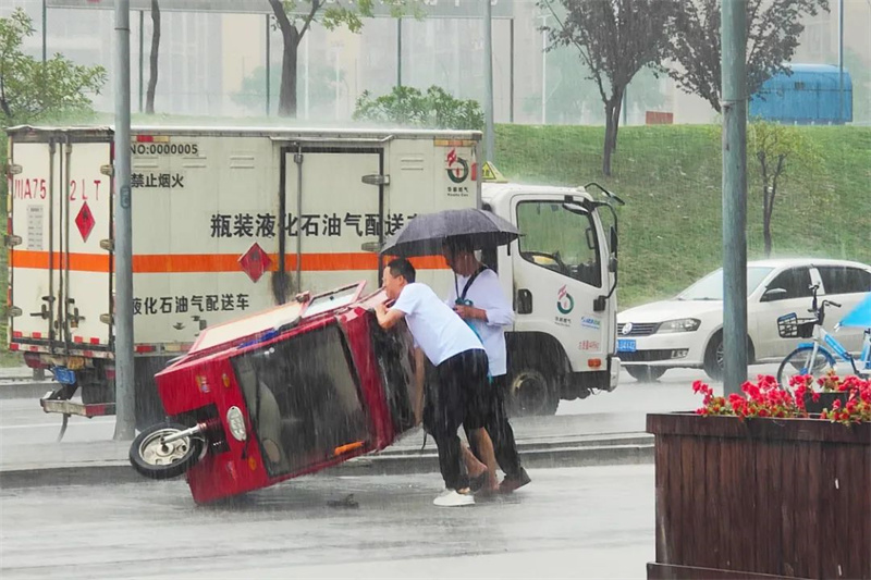 8月3日上午,天气骤变,狂风暴雨袭来,一辆老年代步三轮车侧翻在小站旁边的路面上,正在小站值守的副站长龙镇东立刻放下正准备搬运的物资,迅速向侧翻车辆冲了过去,他发现一名约70岁的老大爷侧躺在车内,他急忙拉开车门询问大爷是否受伤,小心将他扶出车外,将侧翻的三轮车扶正。“谢谢你,小伙子,感谢你及时出手帮助,要不然我可就遇着大麻烦了。”在大雨中被救起的老人向志愿者连连道谢。