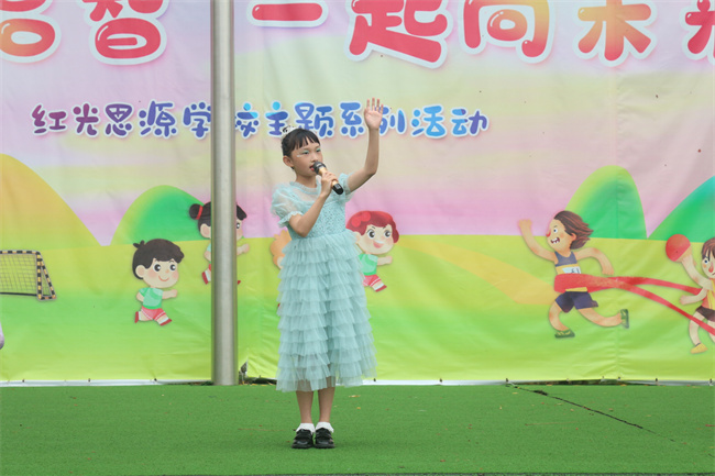 她叫张谨萱,是红光思源学校四年级7班的班长,学校少先队大队委,主持团团长,多次担任大型活动主持人。她是一名勤奋好学的学生,也是一名优秀的班干部,荣获“郫都区三好学生”、优秀少先队员等称号。