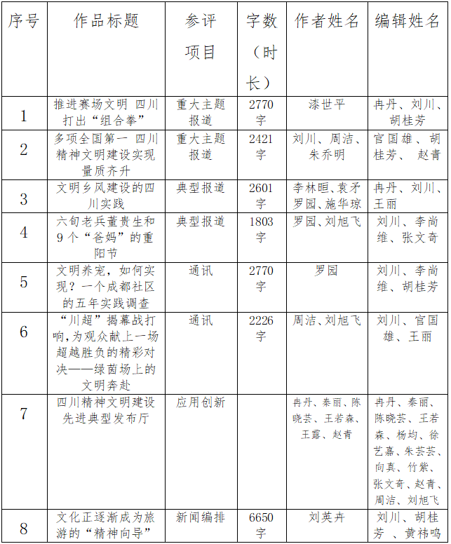 精神文明报社2025年度四川新闻奖推荐名单公示