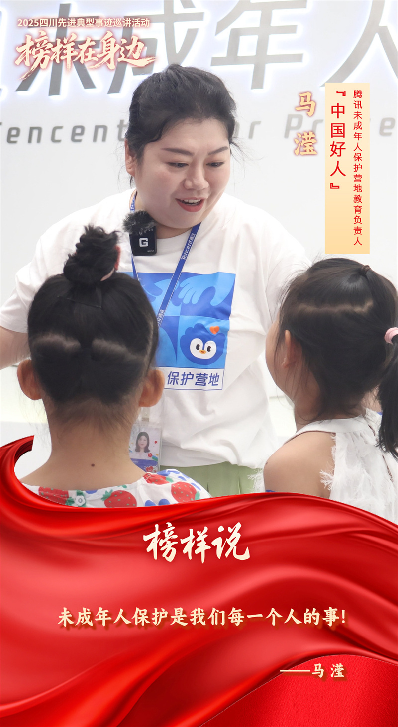 马滢,“中国好人”、“四川好人”、腾讯未成年人保护营地教育负责人,7年多来她深耕未成年人保护领域,始终践行着“蹲下来看孩子”的理念,将理解孩子真实情感需求作为破解网络困境的关键。至今,她带领团队服务超3600万个家庭,深度辅导8.7万名家长。