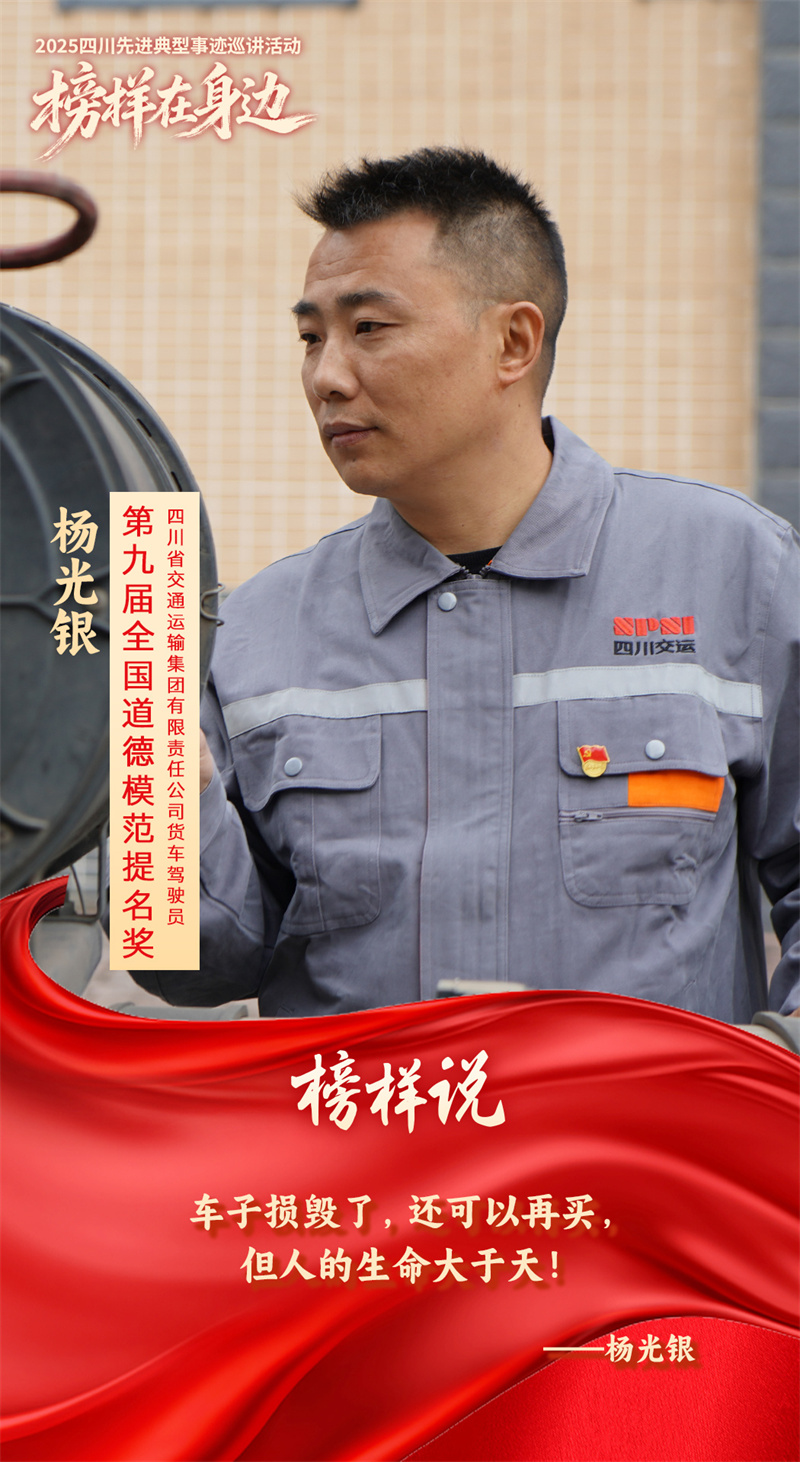 杨光银,第九届全国道德模范提名奖获得者、第八届四川省道德模范、四川省交通运输集团有限责任公司货车驾驶员。