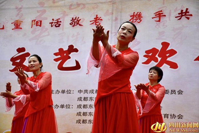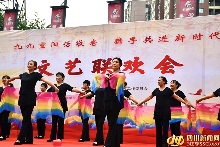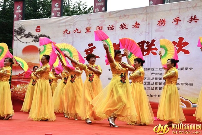 10月12日,成都简阳三岔街道联合三岔街道老龄协会、老年人体育协会、老年大学,在三岔街道球场坝举行“九九重阳话敬老·携手共进新时代”文艺联欢会活动。