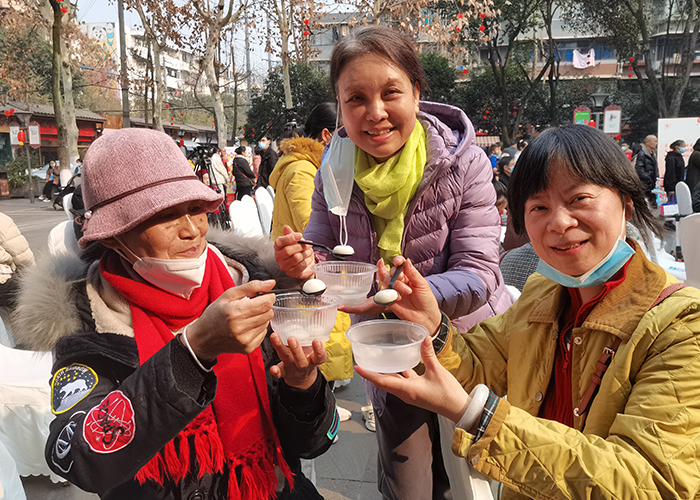 市民享受美味的爱心汤圆