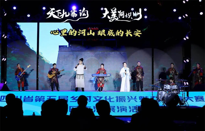 羌笛悠悠诉乡情,欢歌阵阵颂振兴。9月26日,以四川“乡当潮”为主题的四川省第五届乡村文化振兴魅力竞演大赛阿坝州赛区暨四川北区交流展演活动在阿坝州茂县中国古羌城广场举行。来自德阳市、绵阳市、广元市、甘孜州、阿坝州等四川北部市(州)的10支参演队伍以灵动的歌舞、独具特色的情景剧等艺术形式,为现场观众呈上了一场热闹非凡、精彩纷呈的文化盛宴。