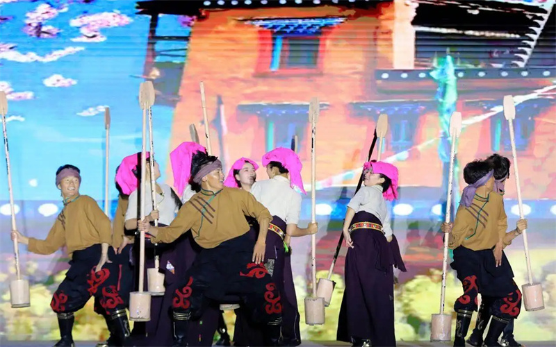 甘孜州九龙县带来的情景剧《幸福团结村》,演员们用真挚的表演,聚焦甘孜州脱贫攻坚与乡村振兴事业,展现了基层干部扎根一线的无私奉献精神;康定市歌伴舞《牵手》中的演员们以轻盈的舞姿和悠扬的歌声展现了甘孜儿女心手相牵、跨越山海的情谊,用团结与感恩书写了甘孜美好生活的幸福篇章。