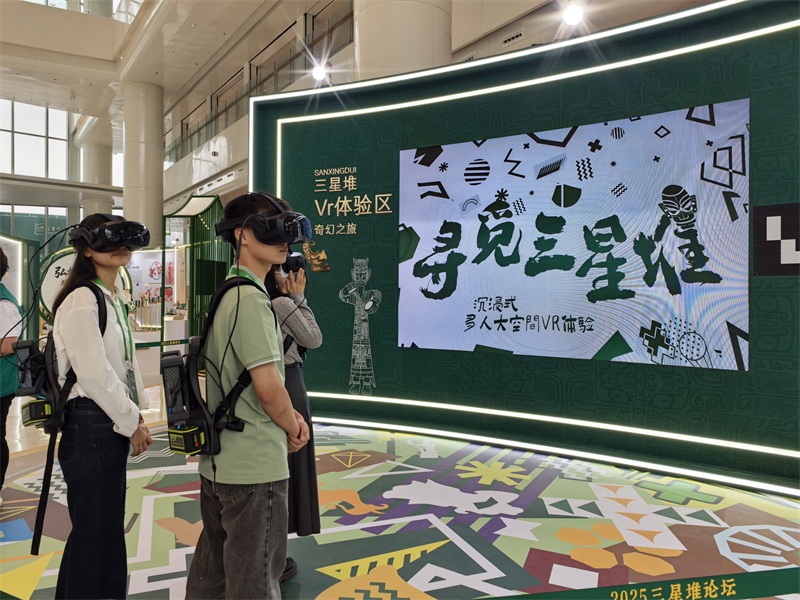 参会嘉宾体验三星堆VR奇幻之旅。(罗园 摄)