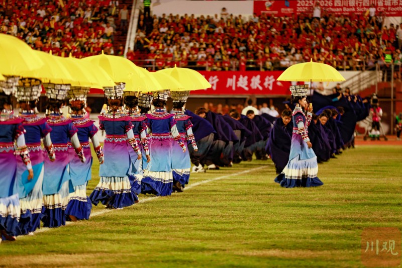 “嘎哟啦是彝语,意为欢迎。接到表演任务后,我们精心设计,希望在节目中充分展现民族文化,并与现代时尚元素融合。团队100多人精心打磨排练,为川超加油助力。”此次节目导演、凉山州歌舞团创演总监甲巴拉者告诉记者。年轻的领舞演员陈利康也激动地表示,“我爱好踢球,这次能在川超舞台上表演,是另一种圆梦。”