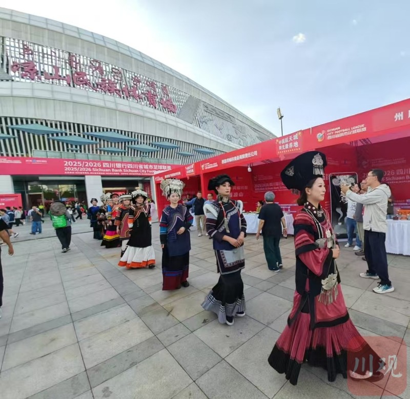 10月2日19时35分,川超凉山主场对阵眉山,不光激烈比拼点燃观众热情;服饰展演、非遗展示、民族音乐……赛场内外也刮起了最炫民族风,外地游客充分领略到彝风彝韵等的独特魅力。