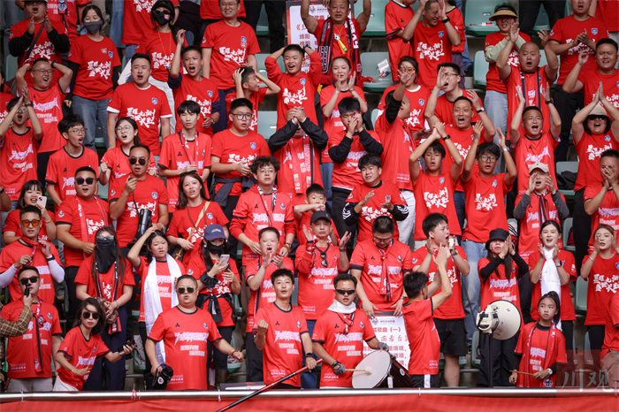 资阳球迷为自己的球队加油呐喊。(吴昊江 摄影)