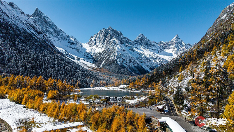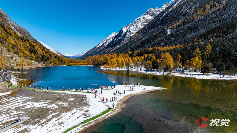 11月4日,阿坝州理县毕棚沟进入最美观赏期,游客打卡雪后彩林美景。C视觉签约摄影师 王叙融 摄