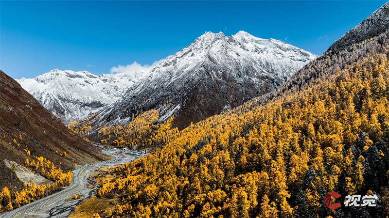 11月4日,阿坝州理县毕棚沟进入最美观赏期,雪山与彩林同框,冷暖相撞,景致如诗如画。C视觉签约摄影师 王叙融 摄