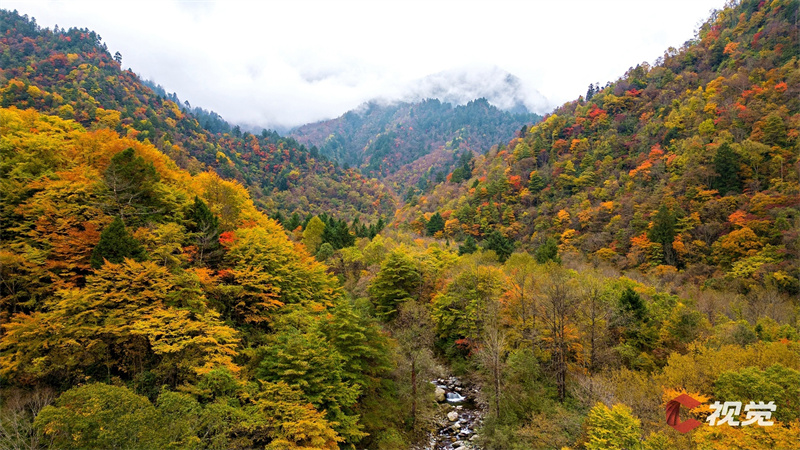 11月1日,广元市青川县唐家河进入彩林观赏期,漫山彩林如同大地的“调色盘”,美不胜收。C视觉签约摄影师 熊能 摄
