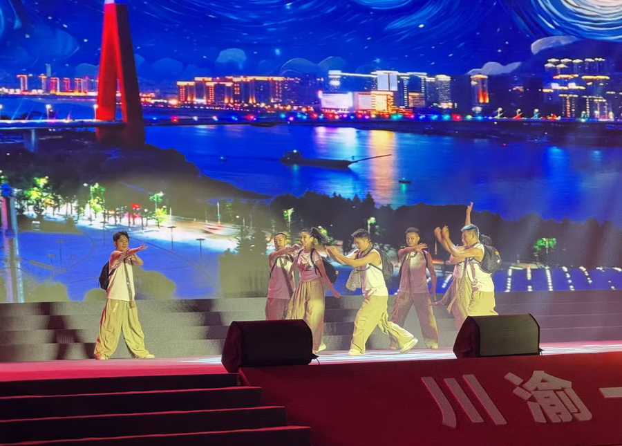 自2024年以来,川渝两地以“跨省共建”模式,联合开展“巴蜀同脉 文明同行”川渝新时代文明实践工作,创新打造川渝文明实践“一廊四带”,始终以深入宣讲党的创新理论、大力弘扬社会主流价值、丰富活跃群众文化生活、持续推进农村移风易俗、广泛开展社会互帮互助等方式,将文明成果送到群众心坎上。川渝“村晚”作为两地持续深化文明实践共建互鉴,进一步健全“一廊四带”工作机制,促进两地精神文明交流合作,丰富川渝群众精神文化生活的重要活动,它的开展生动展现出川渝两地乡村在产业兴旺、生态宜居、乡风文明等方面取得的成果,也勾勒出川渝乡村的和美画卷。