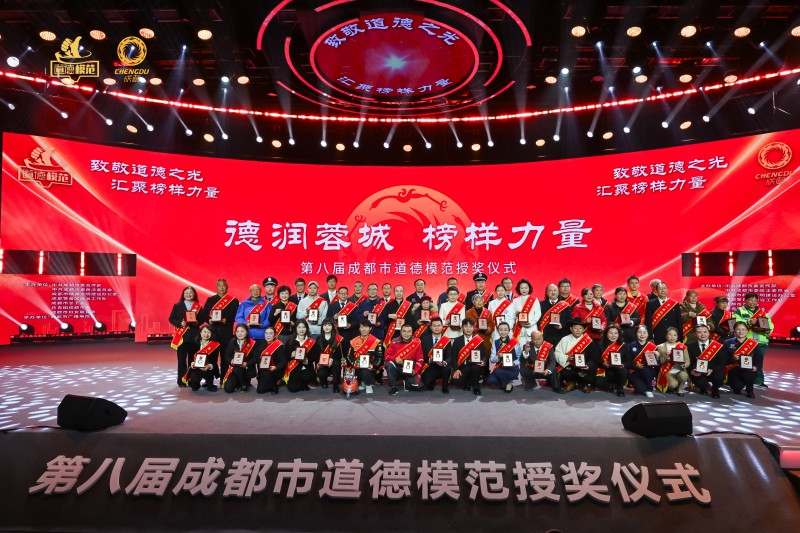 授奖仪式为50人(组)来自各行各业的道德模范授奖,并分享他们的故事。活动现场,道德星光璀璨,与城市文明相映成辉,书写温暖生动的时代注脚,勾勒出 “崇德向善的人文成都” 最美轮廓。