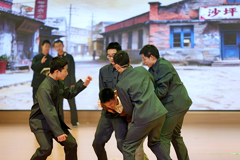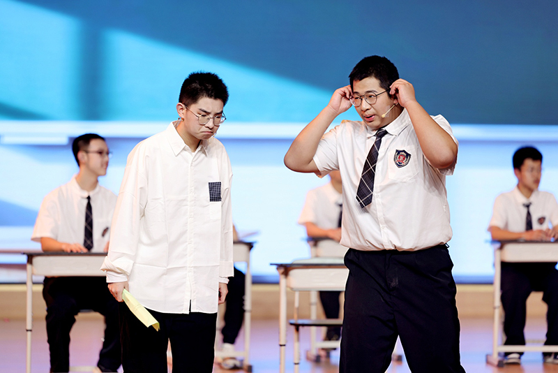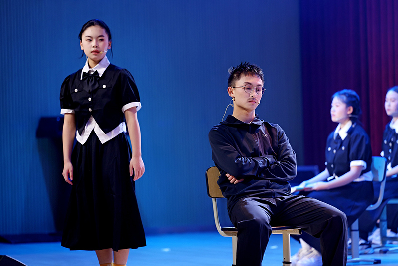 剧目还关注到个体成长的差异化需求,给出了温暖的解决方案。《雷雨·新生》中,针对拒绝集体活动的男孩,教师未加勉强,而是尊重其对交通科技的兴趣,最终该男孩以视频形式参与集体演出,印证了“不放弃每个孩子,就是看见他独特的光”的教育思路;《等待》里,原本沉浸书海拒绝参演的男孩,在同学的温暖互动中主动尝试小角色,实现自我突破。