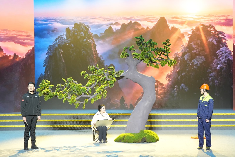 情景小品《一动一静,守护黄山之巅》生动讲述安徽黄山风景区普通工人李培生、胡晓春用心用情守护美丽黄山的故事。漆世平 摄