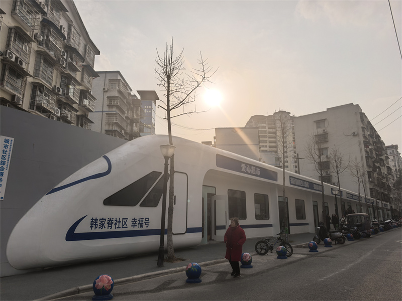 韩家脊社区“幸福号”便民服务街。罗园 摄