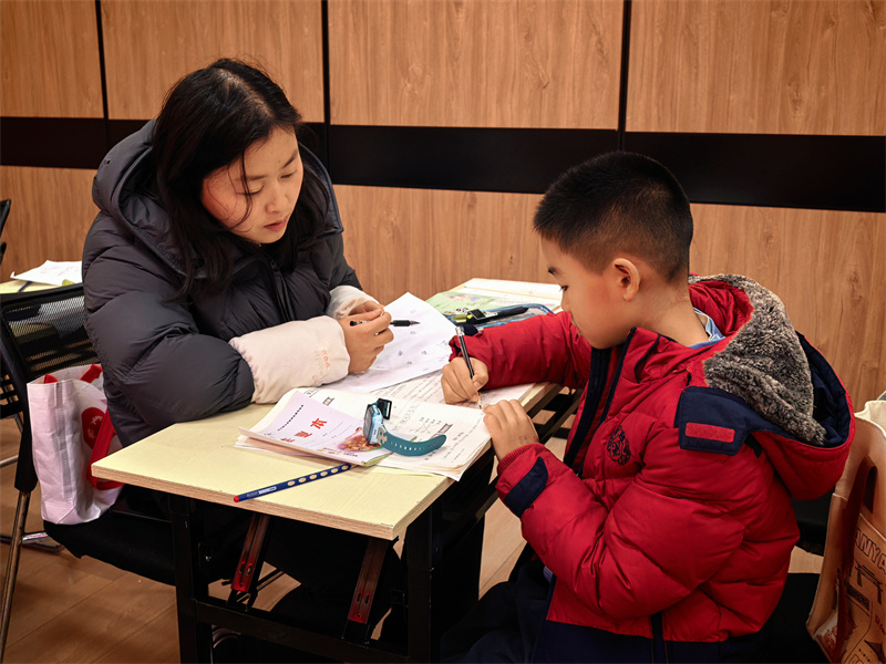 韩家脊社区党群服务中心里,老师辅导孩子写作业。李尚维 摄