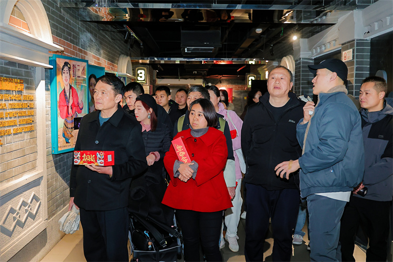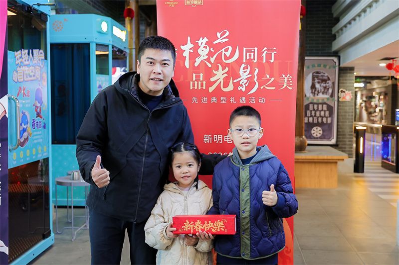 走进影院,“礼遇模范 致敬榜样”“光影有温度 城市有情怀”等主题手举牌与事迹展板整齐布置,营造出庄重而温暖的礼敬氛围。志愿者微笑着为每一位先进典型及家属送上新春礼包,传递着浓浓的年味与诚挚的问候。