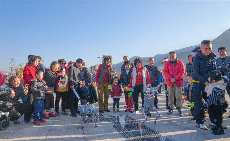 机器狗带来的欢乐。米易县融媒体中心供图。