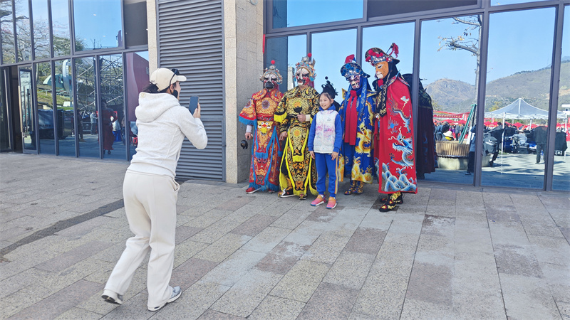 变脸演员受到观众喜爱。卢瑶 摄