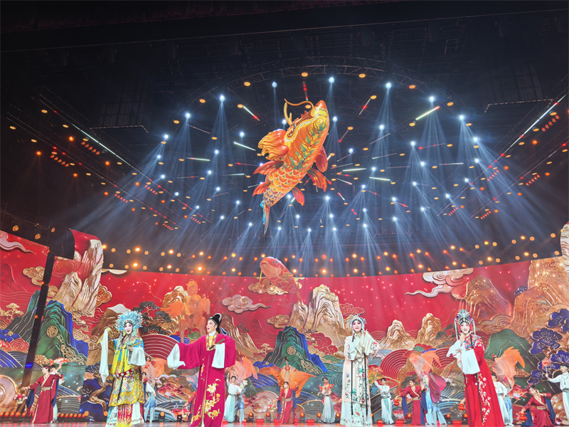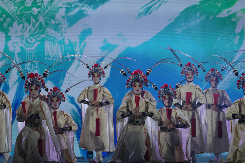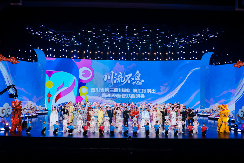 晚会现场汇聚川剧艺术精粹,百余位青年川剧演员以一曲《百花争妍》拉开演出序幕。川剧经典剧目荟萃《梦回·华章》、第十八届文华奖获奖剧目《梦回东坡》选段等精品节目轮番上演,川剧武戏新编《白蛇情·破禅关》、古典国风变脸舞蹈《风华鉴》等融入新潮表达,尽显新时代川剧薪火相传、守正创新的蓬勃生机,为现场观众奉上一场韵味十足的戏曲文化盛宴。