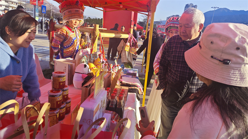 2月9日,米易东站站前广场,当地特色农产品受到好评。 卢瑶 摄