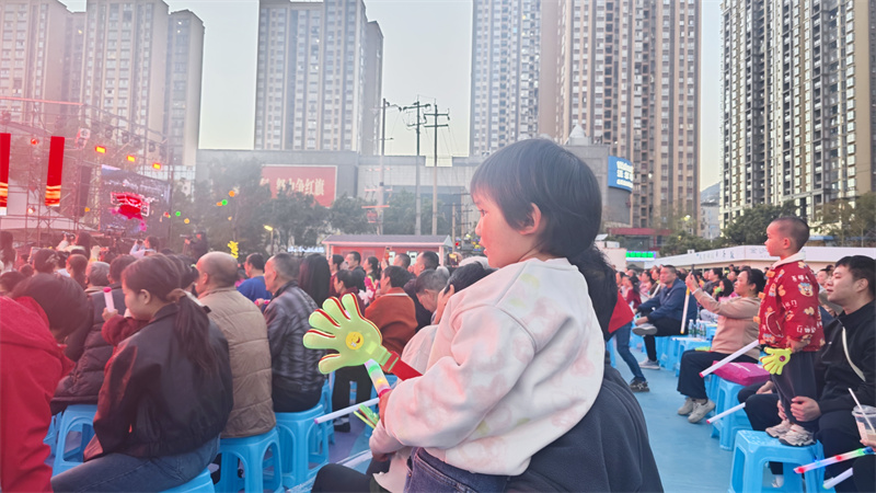 2月10日,攀枝花市仁和文化广场观看演出的观众。 卢瑶 摄