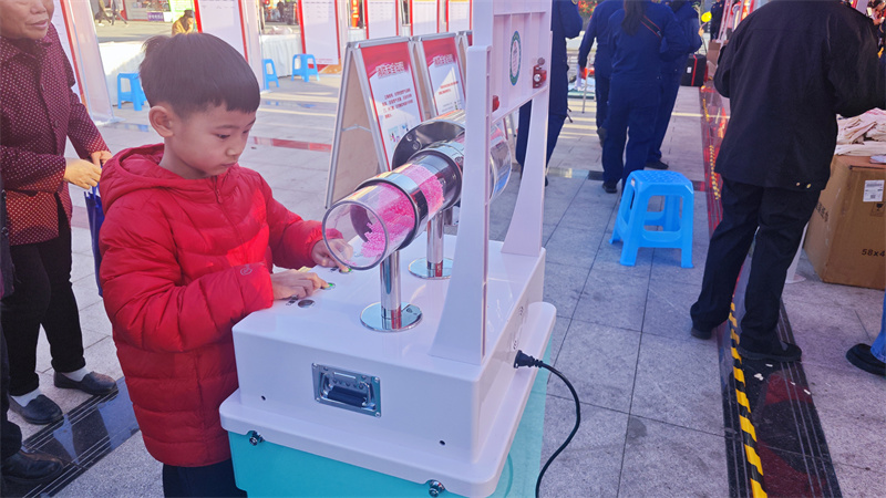 2月11日,盐边县昌意广场上,小朋友好奇地操作科普器材。 卢瑶 摄