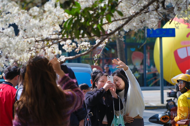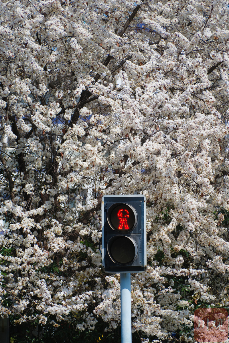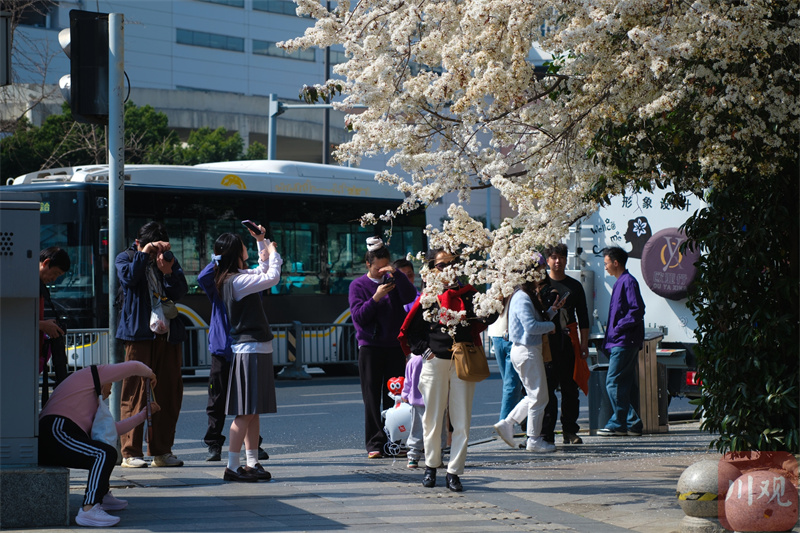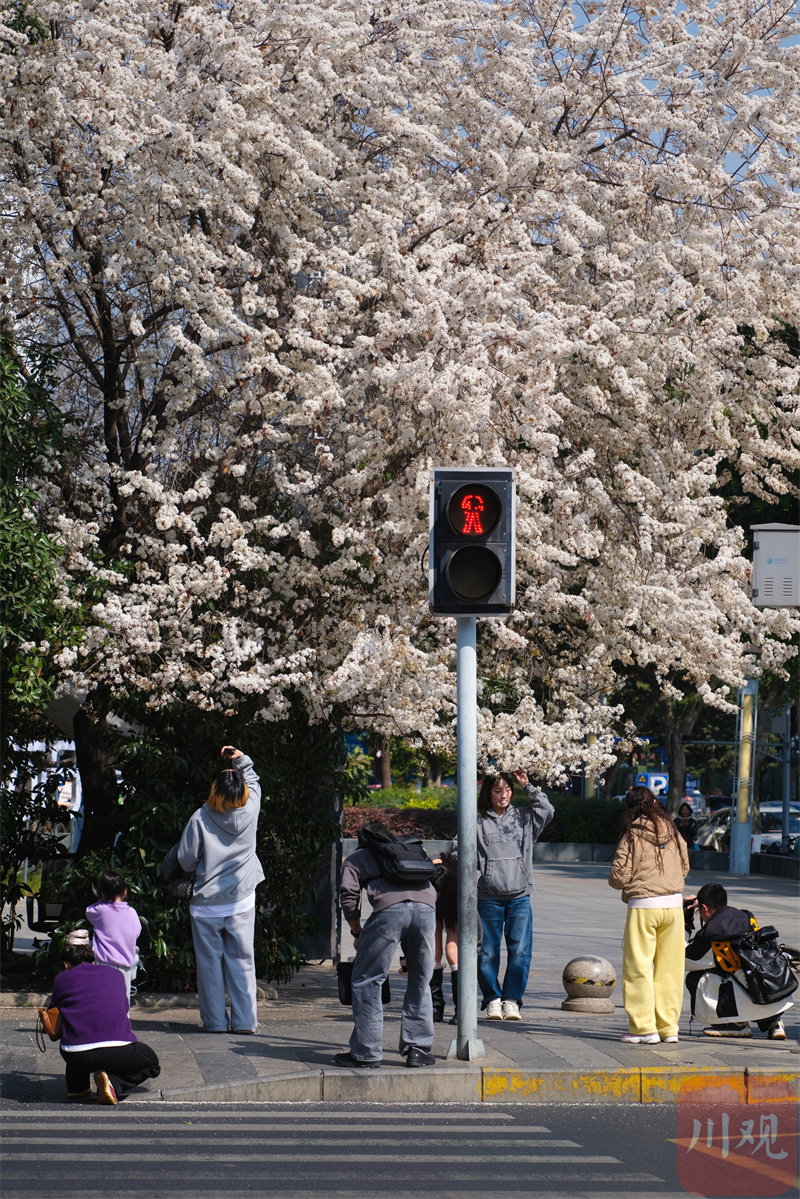 成都街头一棵樱花树火了 粉嫩花朵美翻街头